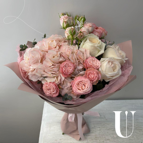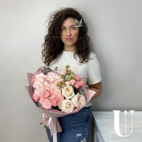 - Роза кустовая пионовидная, Бомбастик, пудровая - 5 шт