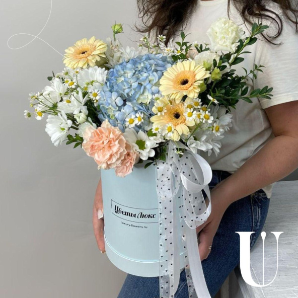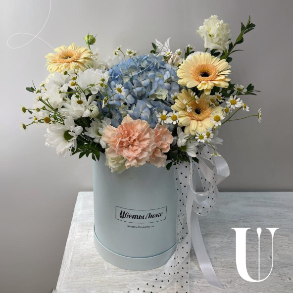 - Шляпная коробка маджестик (U), светло-голубая (выс. 25 см, диам. 20 см) - 1 шт