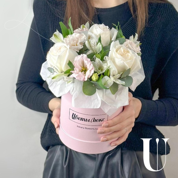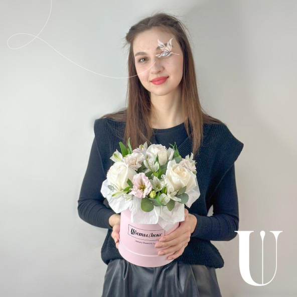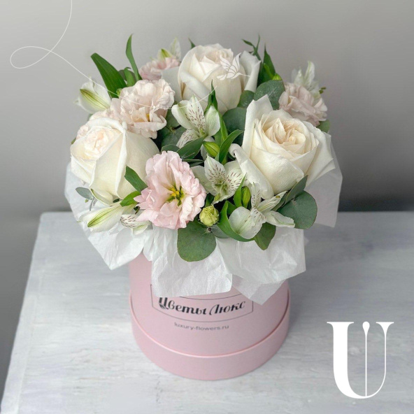 - Шляпная коробка маджестик (U), светло-розовая (выс. 18 см, диам. 16 см) - 1 шт