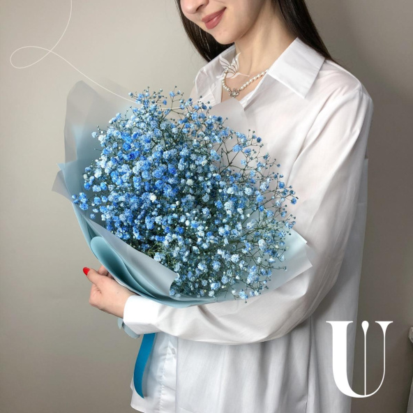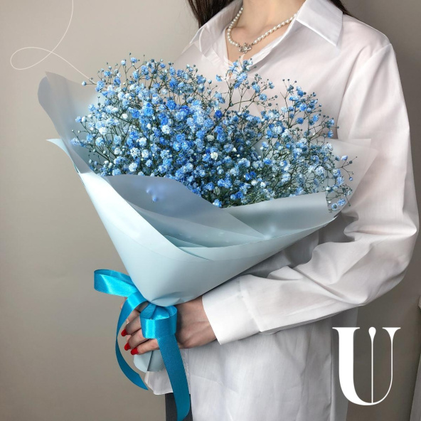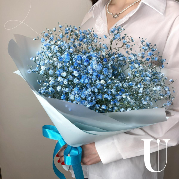 Монобукет из розовой гипсофилы в нежно-розовой упаковке