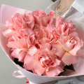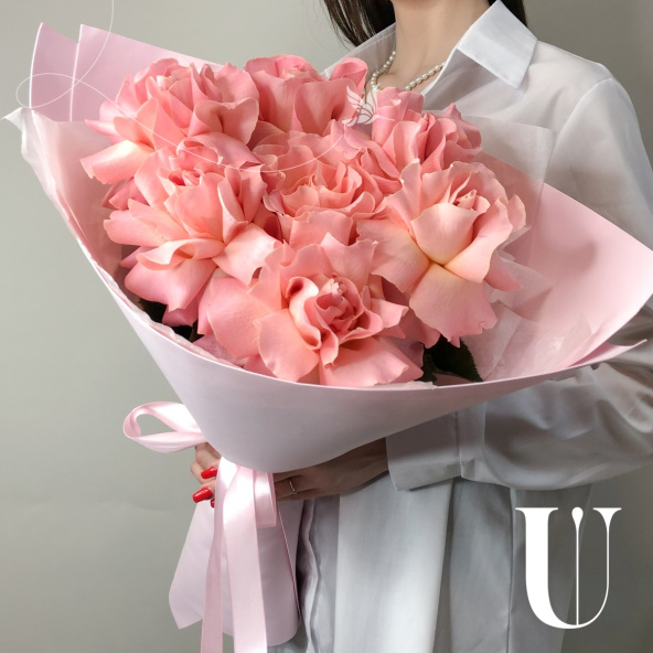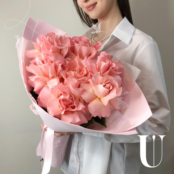 Монобукет из 11 розовых роз сорта Эрмоса в розовой упаковке