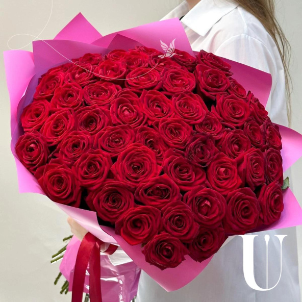 Нестареющая классика в роскошном формате- 51 алая роза. Такой букет сложно оставить без внимания!