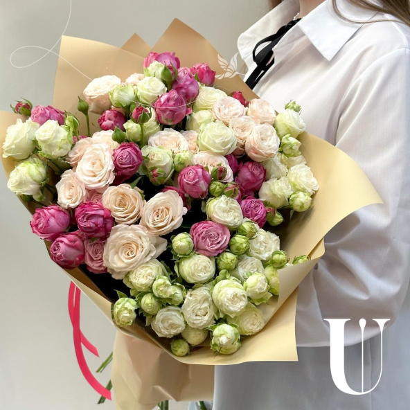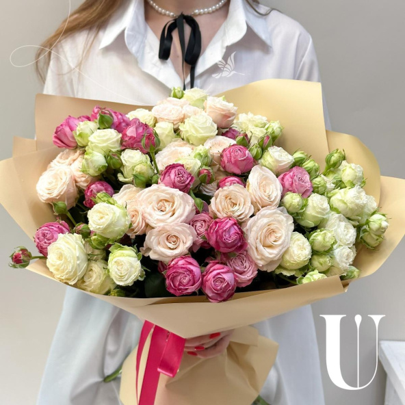 Кружева в руках. Кустовые пионовидные розы помогут вам произвести впечатление на ваших любимых. Это шикарный букет для любого повода.