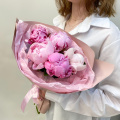 Монобукет из розовой гипсофилы в нежно-розовой упаковке