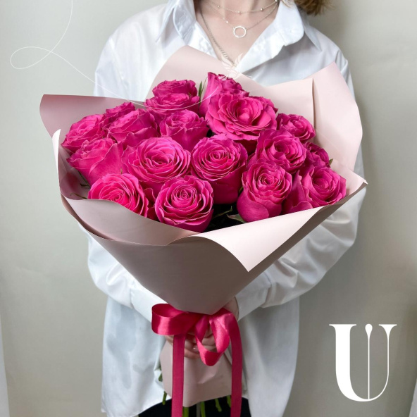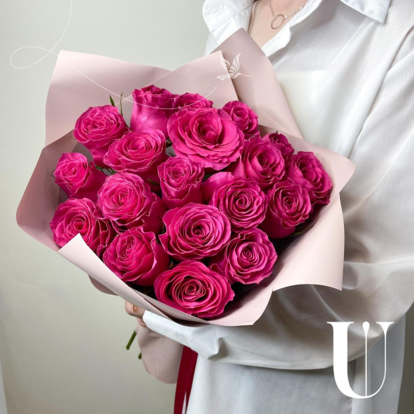 Яркий букет из свежих малиновых роз станет отличным подарком для ваших любимых и коллег.