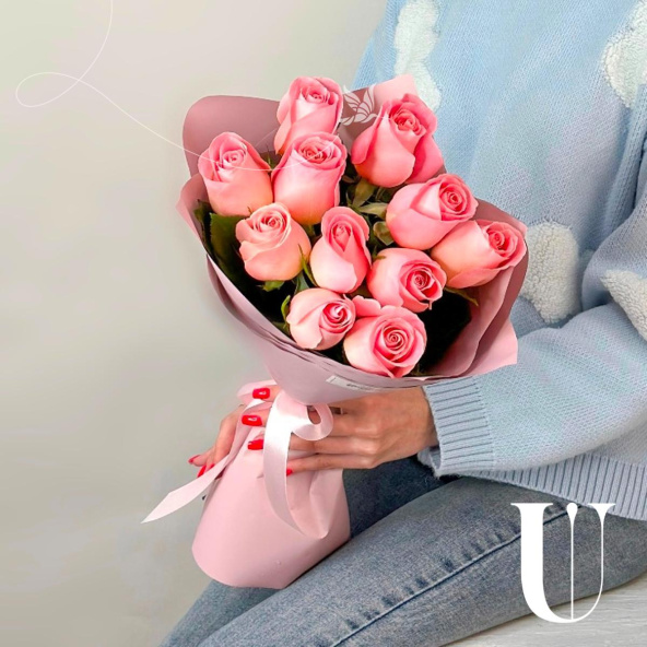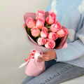 Монобукет из 9 роз Кантри Блюз в ярко-розовой упаковке