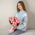 Милый букет из нежных лососевых роз. Подарите хорошее настроение вашим близким и закажите доставку цветов.