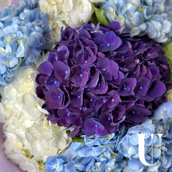 Космос - это букет, выполненный в нежных бело-голубых оттенках. Огромное облако шикарных гортензий подарит незабываемые эмоции вашим близким. Мы также с удовольствием добавим к цветам Ваш подарок или записку!